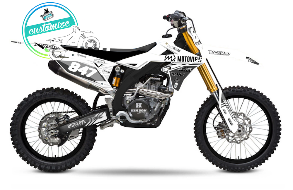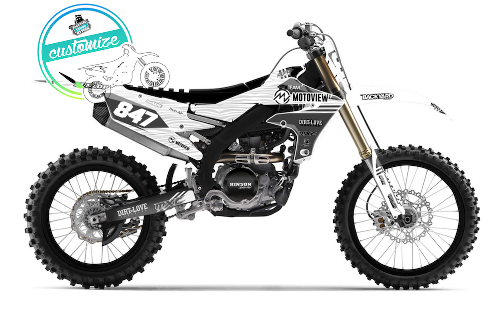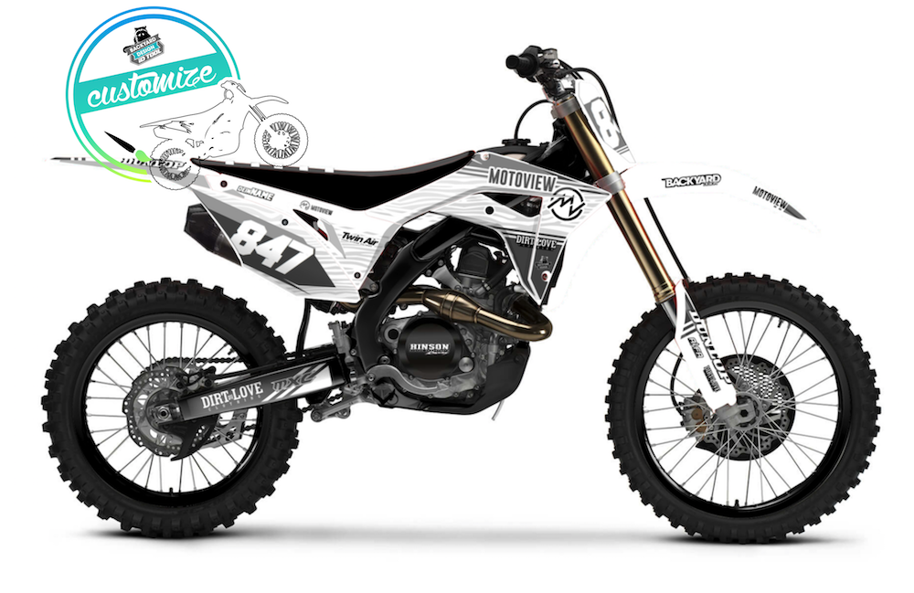 Erstelle jetzt dein eigenes Motoview Dekor. Mit dem Online Konfigurator von Backyard Design kannst du dein individuelles Motocross Dekor nach deinen Wünschen erstellen. Klick einfach auf dein BIKE und Los Geht's!
